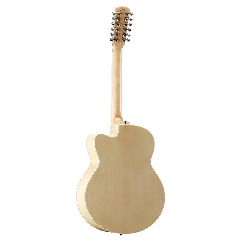 'Chitarra acustica a 12 corde elettrificata. Corpo Jumbo. Tavola in abete Sitka A massiccio. Manico in acero. Fasce e fondo in acero. Costruzione FST2. Ponte a due livelli in palissandro e alloro indiano. Tastiera in...