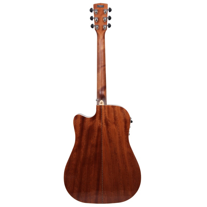 Chitarra acustica elettrificata tipo Dreadnought con cutaway. Tavola in abete massello. Fasce, fondo e manico in mogano. Tastiera e ponte in palissandro. 20 tasti. Scala 25,3. Pickup Fishman Matrix. Preamplificatore...