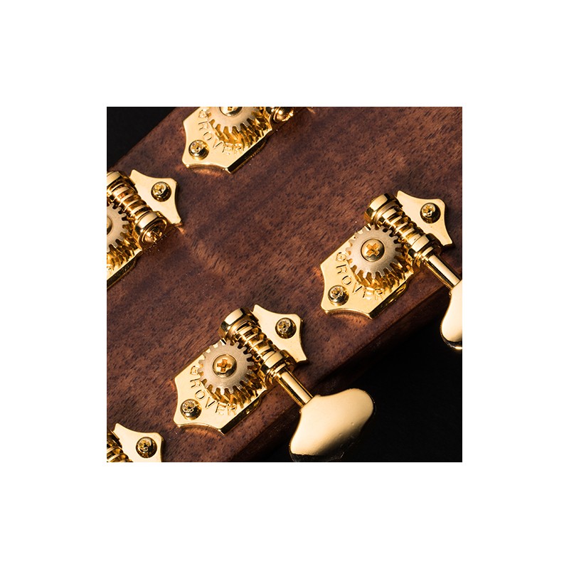 Chitarra acustica elettrificata con cutaway tipo Grand Auditorium. Tavola in abete Sitka massello, fasce e fondo in mogano massello. Manico in mogano con tastiera in ebano di Macassar. Accessori dorati. Meccaniche...