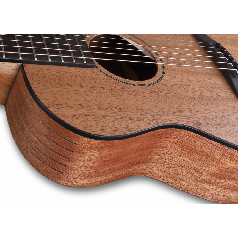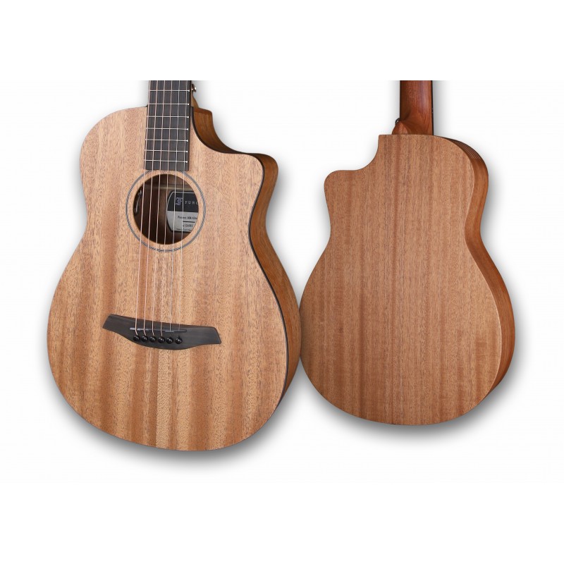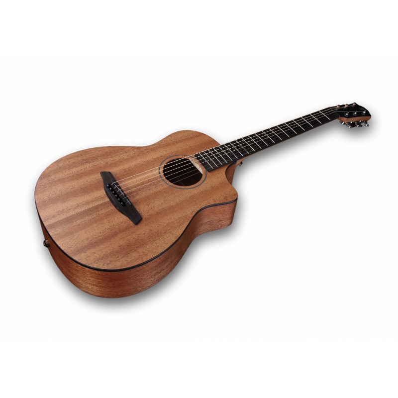 Furch Pioneer-MM, chitarra acustica, corpo da viaggio, cutaway, tavola in mogano massiccio , Booster Soundport sul lato anteriore, fondo e fasce in mogano massello, manico in mogano, tastiera e ponte in ebano, larghezza del capotasto 45 mm, scala 615 mm, finitura naturale a pori aperti, inclusa borsa da concerto, Made in Europe (Tschechien), made in europe (czech republic)