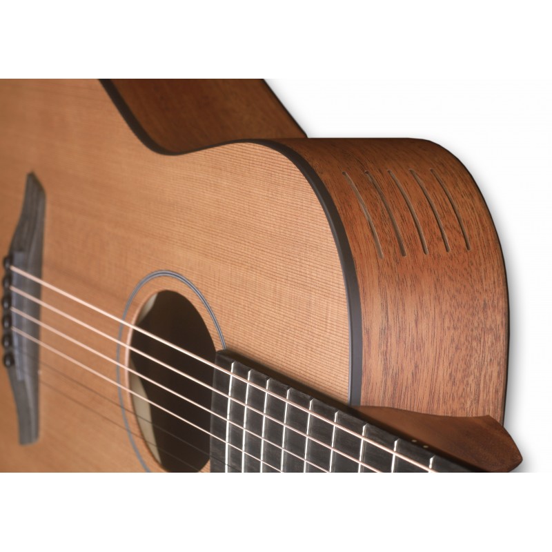 Furch Pioneer-CM, chitarra acustica, corpo da viaggio, cutaway, tavola in cedro rosso massiccio , Booster Soundport sul lato anteriore, fondo e fasce in mogano massello, manico in mogano, tastiera e ponte in ebano, larghezza del capotasto 45 mm, scala 615 mm, finitura naturale a pori aperti, inclusa borsa da concerto, Made in Europe (Tschechien), made in europe (czech republic)