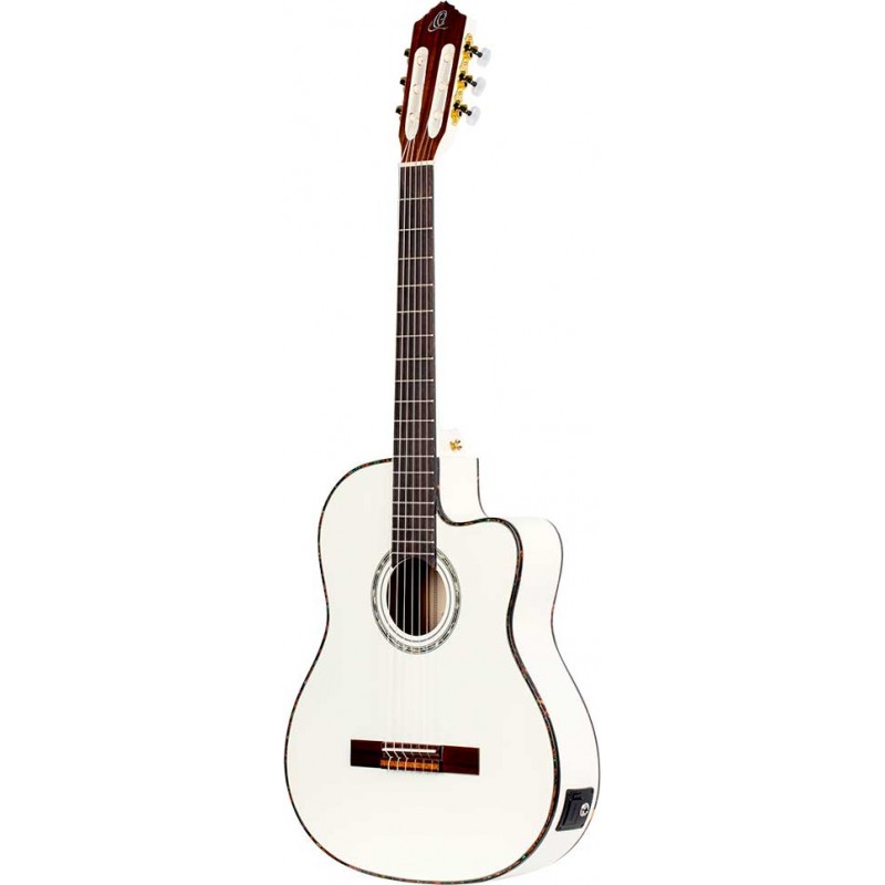 Chitarra classica elettrificata bianca cutaway