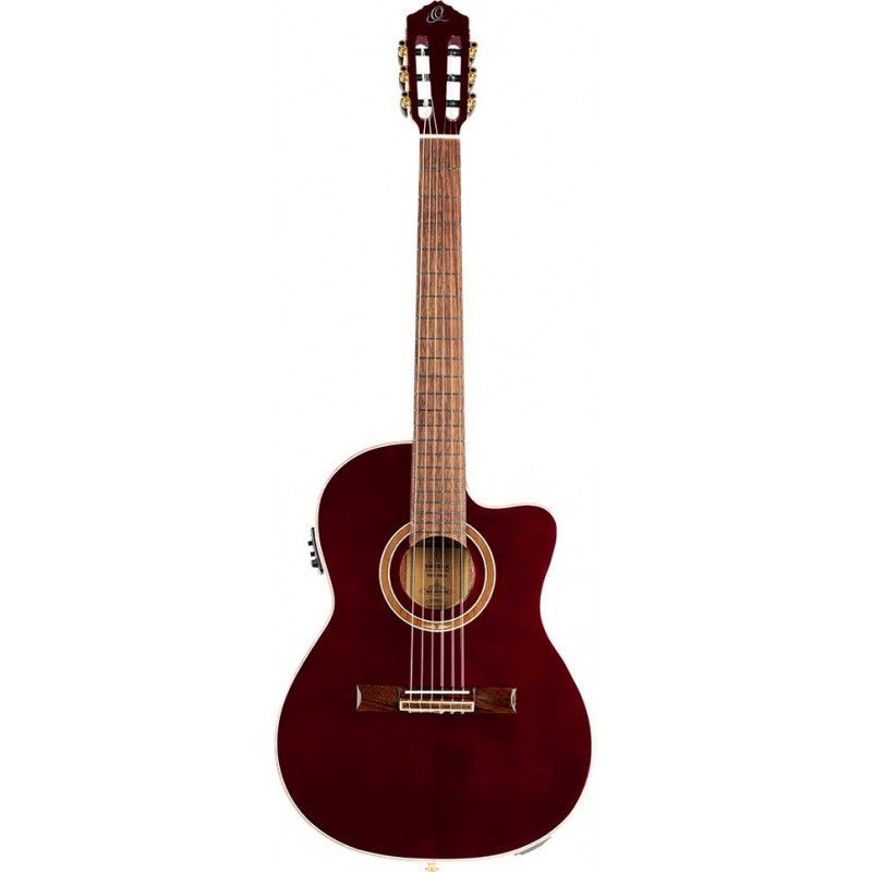 Chitarra classica elettrificata cutaway Feel Series. Cassa sottile. Top in abete Sitka massello, fasce e fondo in caoba. Manico slim. Truss rod. Tastiera in palissandro. Preamp Magus Pro con accordatore. Finitura wine...