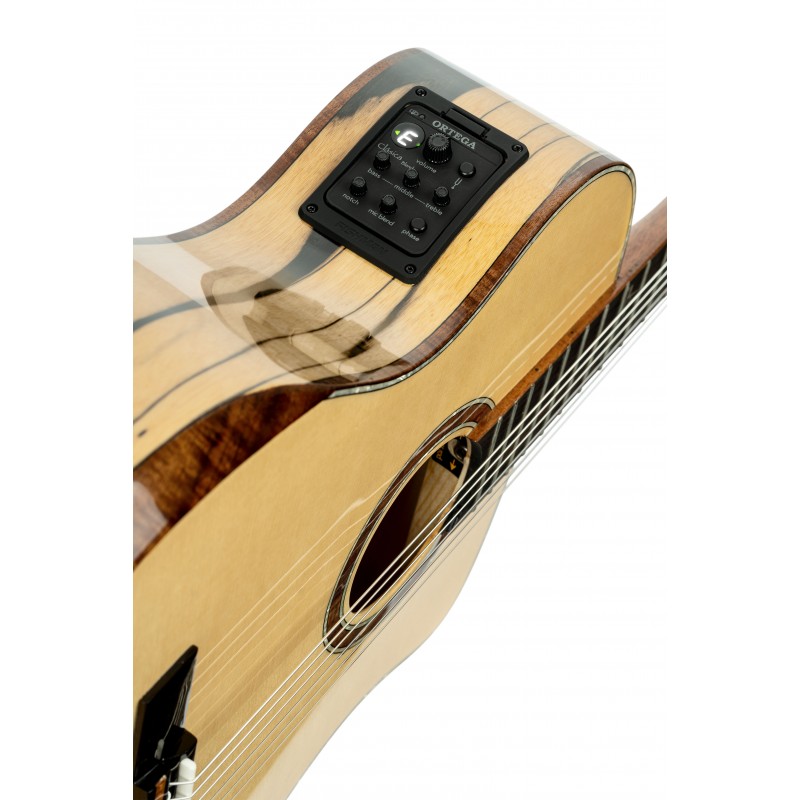 Il modello BYWSM Signature è dotato di un sistema di preamplificazione Fishman/Ortega Clasica Blend. Sul retro della classica paletta scanalata troverai la firma di Billy incisa al laser.
