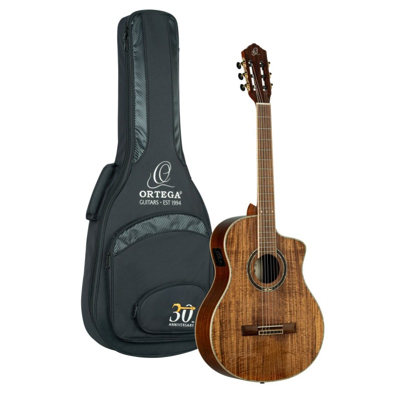 Per celebrare il 30¡ anniversario di Ortega Guitars, siamo orgogliosi di presentare due squisite chitarre con corde in nylon realizzate in legno di acacia AAA. La chitarra Ortega Guitars 30th Anniversary brilla con uno squisito top, fondo e fasce in acacia selezionata AAA. Il legno di Acacia offre un suono caldo e morbido con una robusta gamma media, che lo rende perfetto sia per gli stili di finger che per lo strumming. Inoltre, questa eccezionale chitarra dotata dell'innovativo sistema di preamplificazione ricaricabile MagusPro/G per un'esperienza musicale straordinaria. é inclusa una custodia per il 30¡ anniversario di Ortega Guitars. Festeggia con noi e sperimenta la bellezza e la precisione di questi strumenti di punzonatura in edizione limitata. Taglia: 4/4. Larghezza del capotasto: 47 mm (1,85”). Scala: 650 mm (25,59 pollici). Parte superiore: AAA Selected Flamed Acacia, finitura lucida Fondo e fasce: AAA Selected Flamed Acacia, finitura lucida Stile: Nato, finitura satinata Tastiera e ponte: Noce Tipo di corpo: Cutaway Elettronica: MagusPro/G Sistema di preamplificazione per chitarra con accordatore Rilegatura: Acero con / ABS nero, rilegatura della tastiera in acero Profilo superiore: Acero con nero / Perla / ABS Nero 3 intarsi a punti in acero/perla sul tasto 12 Ponte: Traliccio Ortega a 12 fori: Scala a 2 vie: 650 mm (25,59 ”) Larghezza capotasto: 47 mm ( 1,85 ”) 30° Anniversario con copertura inclusaORTEGA2024