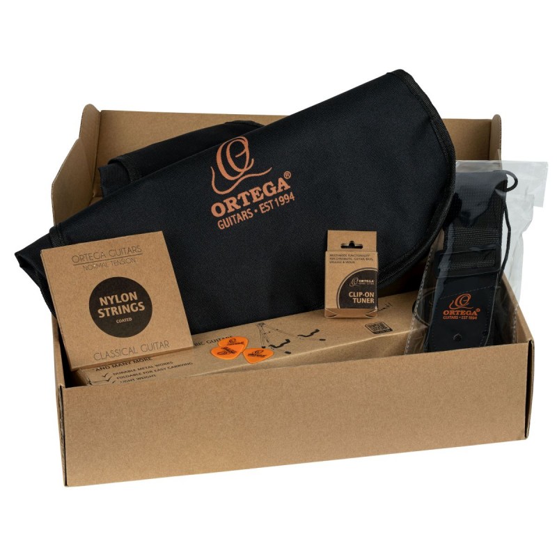 Tutto ci˜ di cui hai bisogno per iniziare a suonare la chitarra: l'Ortega Guitar Picker Pack offre una qualitˆ eccellente e combina una chitarra con corde in nylon con gli accessori indispensabili. Un pacchetto all-in-one ideale per i principianti. Questo set completo á Progettato per una facile maneggevolezza, il che lo rende il punto di ingresso perfetto per coloro che muovono i primi passi nel mondo della chitarra. Il Pacchetto Picker á Disponibile in full size e 3/4. Taglia: 4/4. Larghezza del capotasto: 52 mm (2,05 pollici). Scala: 650 mm (25,29 pollici). Set di chitarre con corde in nylon per principianti Piano: Pietra, finitura lucida Fondo e fasce: Catalpa, finitura lucida Stile: mogano, finitura lucida Tastiera e ponte: noce Ponte: Ortega a 6 fori Scala: 650 mm (25,59”) Larghezza capotasto: 52 mm (2,05”) Pacchetto accessori: borsa, accordatore, supporto, tracolla, corde e pezzi inclusi.