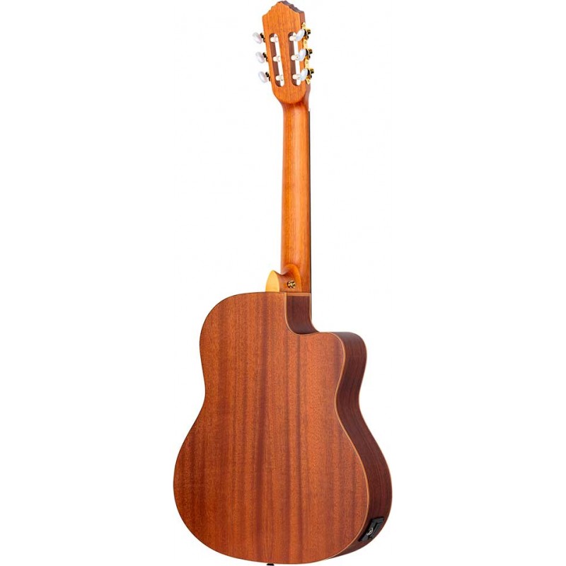 Chitarra classica mancina elettrificata cutaway. Top in abete Sitka massello, fasce e fondo in sapele, manico in caoba. Slim neck, molto stretto. Truss rod. Diapasom in palissandro. Preamp Magus Pro con accordatore....