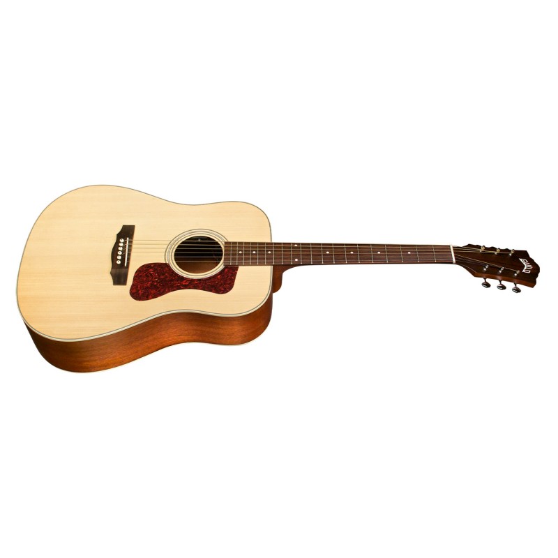 la Guild D240E è costruita con top in abete Sitka rosso massello, fasce in mogano e fondo in mogano arcuato (Arched), questa full-body dreadnought ha un suono potente, bassi generosi e acuti presenti come nella migliore tradizione folk Americana. Il caratteristico design Guild dal fondo arcuato offre grande volume proiezione sonora, sustain. la chitarra ha una scala di 648 mm, il manico è in mogano (profilo C) La D-240E è amplificata con l'elettronica Fishman AP-1 electronics appositamente progettata per Guild, tastiera e ponte sono in pau ferro, il nut (43mm) e il traversino in osso. La rosetta è in madreperla, il battipenna in stile d'epoca in celluloide tartarugata, la finitura è poliuretanica satinata natural .