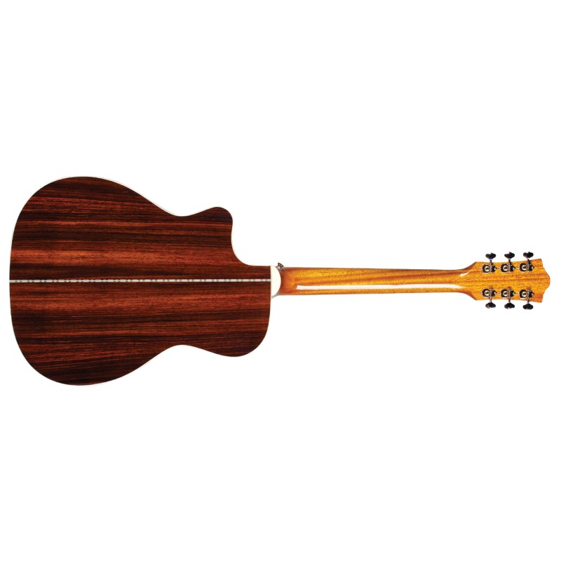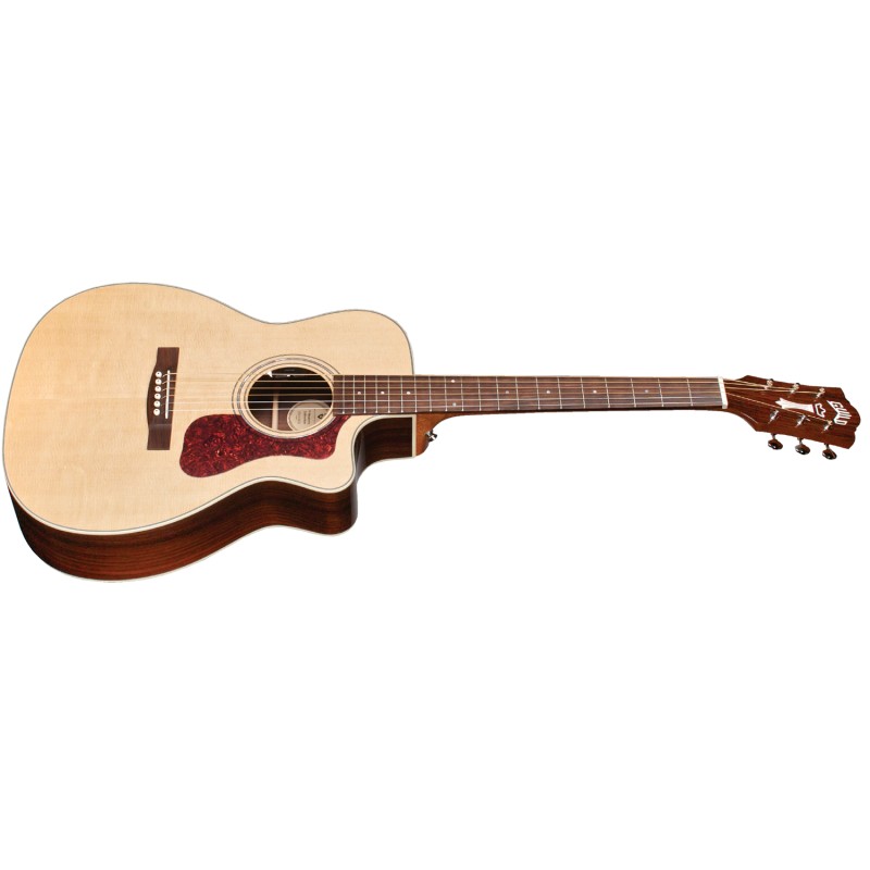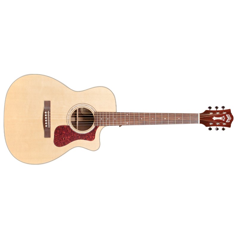 'Questa chitarra acustica forma Orchestra model spalla mancante è ugualmente adatta a strumming e al fingerpicking/Fingerstyle, produce un tono dolce a bilanciato e ricco di armoniche grazie al palissandro indiano La OM-150CE presenta un top in abete rosso Sitka massello, fondo e fasce in palissandro indiano massello, tastiera e ponte in palissandro, un elegante cutaway per l'accesso facilitatato ai tasti alti.iIl pickup in dotazione è un Fishman GT-1 Sonitone per live performances di ottimo livello. Altre caratteristiche includono nut e traversino in osso, rosetta in madreperla. Larghezza L capotasto 1 3/4'' (44,5mm), con manico Profilo C stile vintage, l'iconica paletta Chesterfield con logo madreperlato emblema delle Guild dei '60, battipenna in stile d'epoca in celluloide tartarugata, meccaniche aperte stile Vintage con ratio 18:1 e il nuovo case Guild leggero in polyfoam. La finitura poliuretanica e lucida ( Gloss) Natural.'