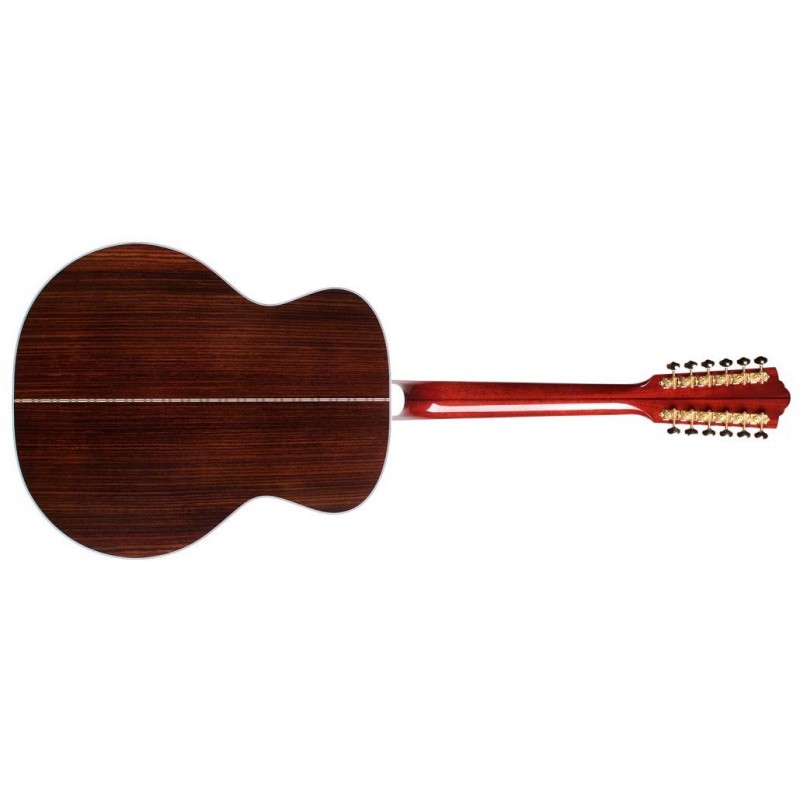 'Notoriamente utilizzata da Tom Petty, David Gilmour e Stevie Ray Vaughan, la F-512 ATB ha definito il suono della chitarra 12-corde negli anni '60, queste iconiche chitarre continuano ad essere le favorite tra le 12-corde oggi presenti sul mercato. La F-512 ATB made in USA realizzata in Southern California, prosegue questa tradizione con un top in abete rosso AAA Sitka massello, fondo e fasce sono in palissandro indiano massello. l'incatenatura è in abete Adirondack intonata a mano, il manico con profilo C ha un rinforzo centrale in Walnut, la scala della chitarra è di 651 mm, il nut (48mm) e il traversino sono in osso.. Questo modello produce alti brillanti, medi definiti e una risposta sulle frequenze basse calda e corposa che la rendono unica e riconoscibile. La tastiera in ebano come il ponte è decorata con i classici inlay Guild MOP V-block,le meccaniche sono le Gotoh SE701 dorate .Vi sembrerà di imbracciare un pezzo di storia con la vostra F-512, ATB la finitura è in Nitrocellulosa lucida Antique Sunburstl, La chitarra è corredata da un custodia rigida in legno Guild con un sistema di umidificazione Humicase®. Il sistema di amplifcazione è L.R. Baggs Anthem.'