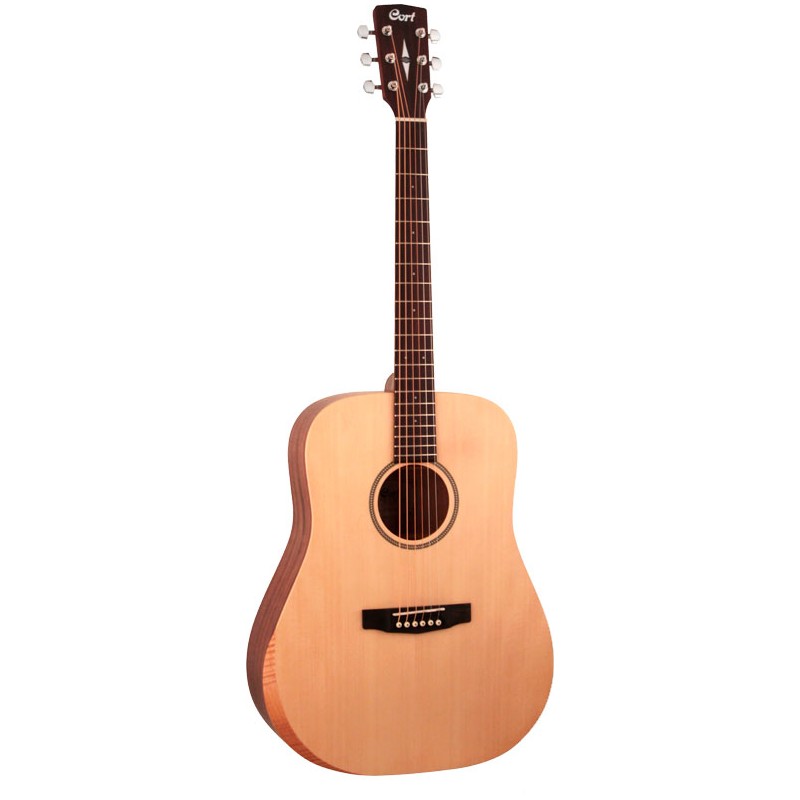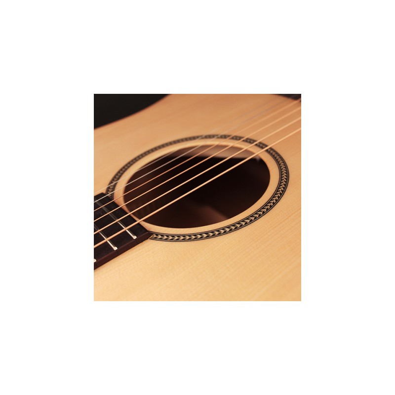 Chitarra acustica tipo Dreadnought. Tavola in abete massello. Fasce e fondo in mogano. Manico in mogano. Tastiera in ovangkol con 20 tasti. Scala 25,3 pollici. Meccaniche diecasting. Ponte in ovangkol. Finitura open...