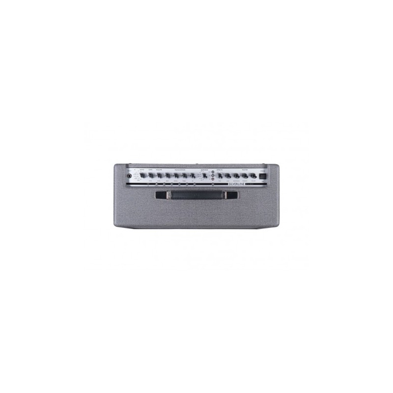 Amplificatore combo digitale programmabile per chitarra elettrica SILVERLINE DELUXE 100W di potenza. Tecnologia con True Valve Power classica con nuovo DSP “SHARC”. 6 voci (Clean Warm, Clean Bright, Crunch, Super Crunch, OD 1, OD 2). ISF (Infinite Shape Feature). 128 banchi di memoria con 4 memorie generali (CH1, 2, 3 e 4). Effetti incorporati. Emulatore valvolare con 6 tipi di valvole. Controllo di EQ Bass, Middle e Treble. Controlli Master Volume, Master Presence e Master Resonance. Porta USB per registrazione ed editing tramite software. Entrata ausiliaria per CD o Mp3. Uscita con simulazione di altoparlante. Accordatore incorporato. Speaker da 12” Celestion V Type. Finitura in tolex argentato “Boutique Silver” con logo metallico frontale. Footswitch multifunzione opzionale (FS-10).