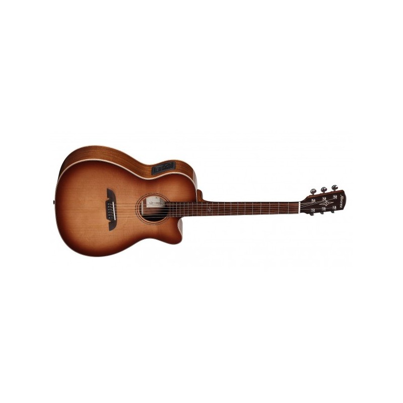 Chitarra acustica elettrificata. Corpo Folk/OM. Tavola in cedro rosso occidentale massiccio AA. Manico in mogano. Fasce e fondo in acacia. Costruzione FS6. Ponte a due livelli in palissandro e alloro indiano. Tastiera...