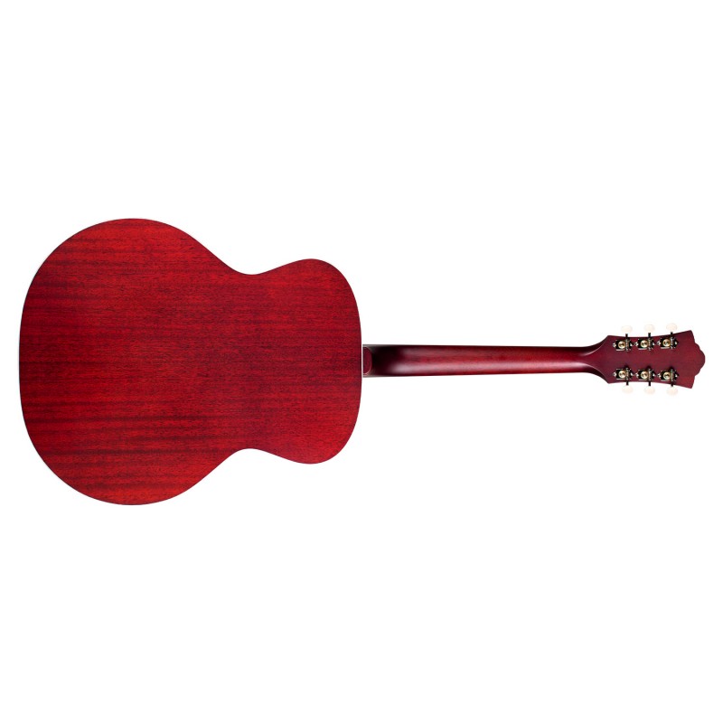 Scopri l'incredibile pulizia, bilanciamento e volume della nostra jumbo-shaped F-40E ATB made in USA realizzata nel Sud della California. Top in abete rosso Sitka massello, fondo e fasce in mogano africano massello, manico in mogano con profilo C,scala 651mm. Questa jumbo è perfetta per i musicisti che cercano grande proiezione e mid-range accentuati, la sua progenitrice, la F-48 Navarre, fu prodotta solamente dal 1972 al 1976 e le versioni originali sono ricercatissime. Le caratteristiche dell'epoca prevedono battipenna in celluloide tartarugata, binding bianco in ABS, logo Guild sulla paletta madreperlato. Materiali pregiati, come il palissandro indiano per ponte e tastiera, meccaniche aperte con ratio 20:1 e palette in acrilico bianche, il nut (43mm) e traversino in osso completano questa splendida acustica. La finitura satinata poliuretanica Antique Burst dona a questa chitarra un look familiare e permette al legno di vibrare liberamente. Ogni F-40E ATB è corredata da una custodia rigida in legno Guild con un sistema di umidificazione Humicase® .Il sistema di amplifcazione è L.R. Baggs Anthem.