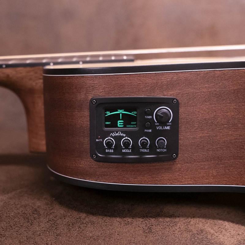 'Chitarra Acustica 12 Corde Serie Natura 500 Corpo: Dreadnought Top: Abete Rosso massello Fondo e Fasce: Mogano laminato Catenatura: Scalloped-X low-mass Manico: Mogano rinforzato Fiberglass, truss rod two-way Tastiera e Ponte: Rosewood Capotasto e Sella: 'GRAPH TECH NuBone' Rosetta: ABS Binding: ABS Nero Battipenna: Finta tartaruga Chiavi: Chrome die-cast tuners Elettronica: 'WALDEN Active' EQ & Accordatore Finitura: UV cured PE - Open Pore Satin Finitura Larghezza Capotasto: 43 cm (1.69'') Larghezza Spalle: 29,65 cm (11.63'') Vita: 27,62 cm (10.88'') Larghezza Fianchi: 40 cm (15.75'') Profondità: 12,38 cm (4.88'') Lunghezza Corpo: 50,8 cm (20'') Lunghezza Scala: 64,77 cm (25.5'') Corde D'ADDARIO EXP11 Gigbag Walden'