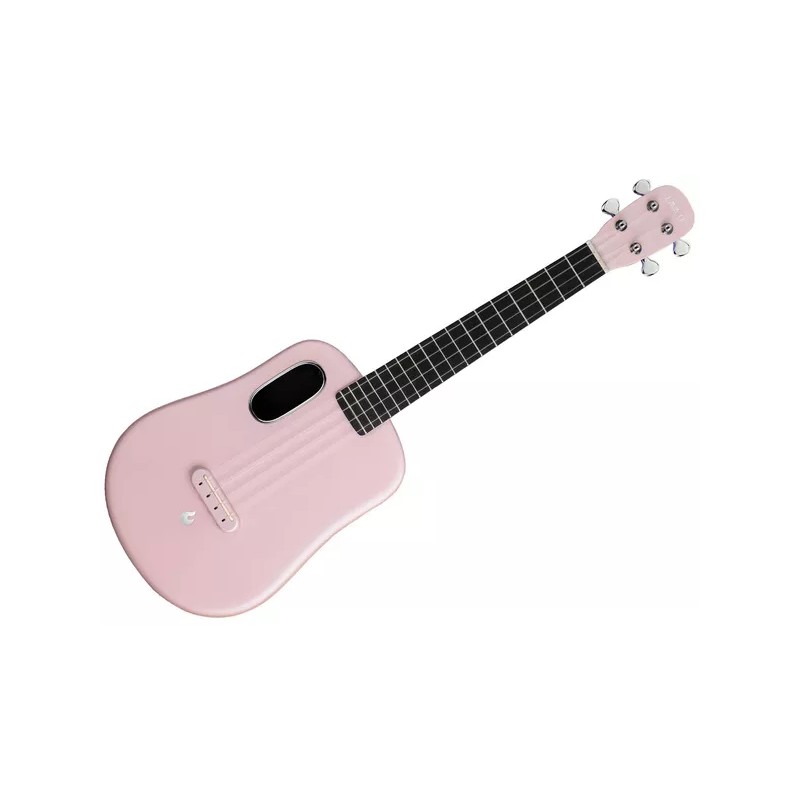 Ukulele da 26 pollici construito in fibra di carbonio.Paletta senza viti, ad alta precisioneSuono brillante.Custodia inclusa. Finitura rosa.