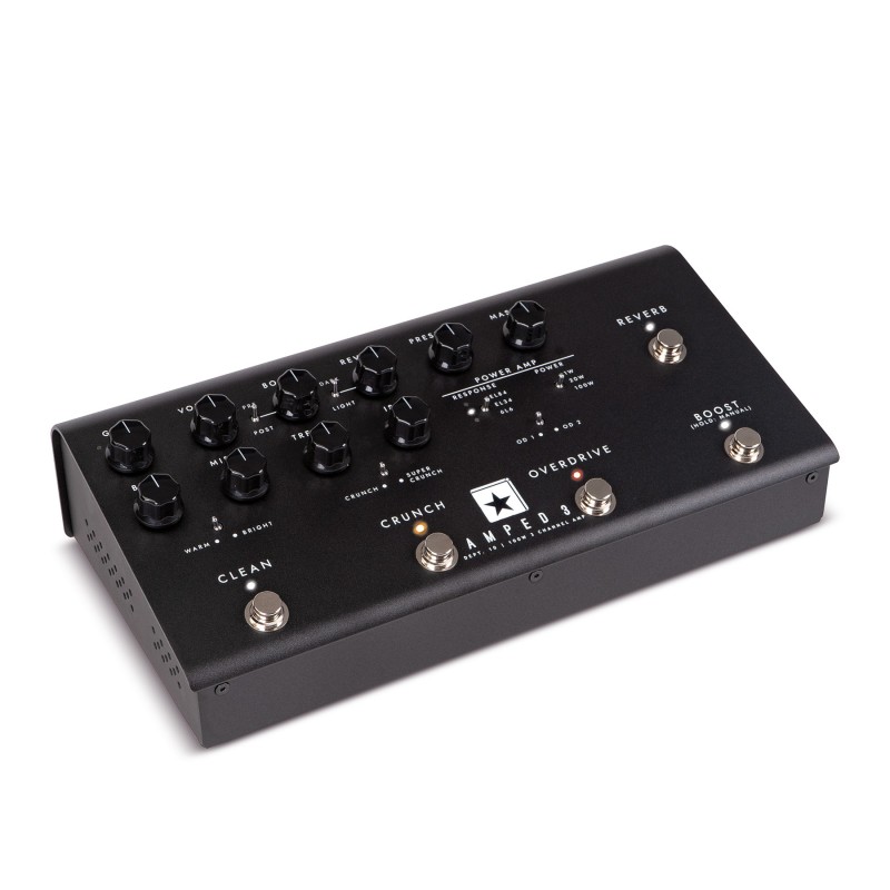 L'AMPED 3 è un amplificatore a pedale da 100 watt ad alto rendimento con 6 opzioni di voce e 3 canali programmabili con riverbero. Perfetto per i musicisti che cercano i toni di segnale più elevati che si trovano negli amplificatori valvolari multicanale come la Series One. È possibile utilizzarlo per alimentare un altoparlante da 100 watt, per l'uscita diretta alla scrivania o per collegarlo a un altro amplificatore tradizionale, in modo da portare con sé il proprio suono ovunque si vada. La riduzione della potenza fino a 1 W e la connettività USB-C lo fanno sentire a casa sia in studio che sul palco.
