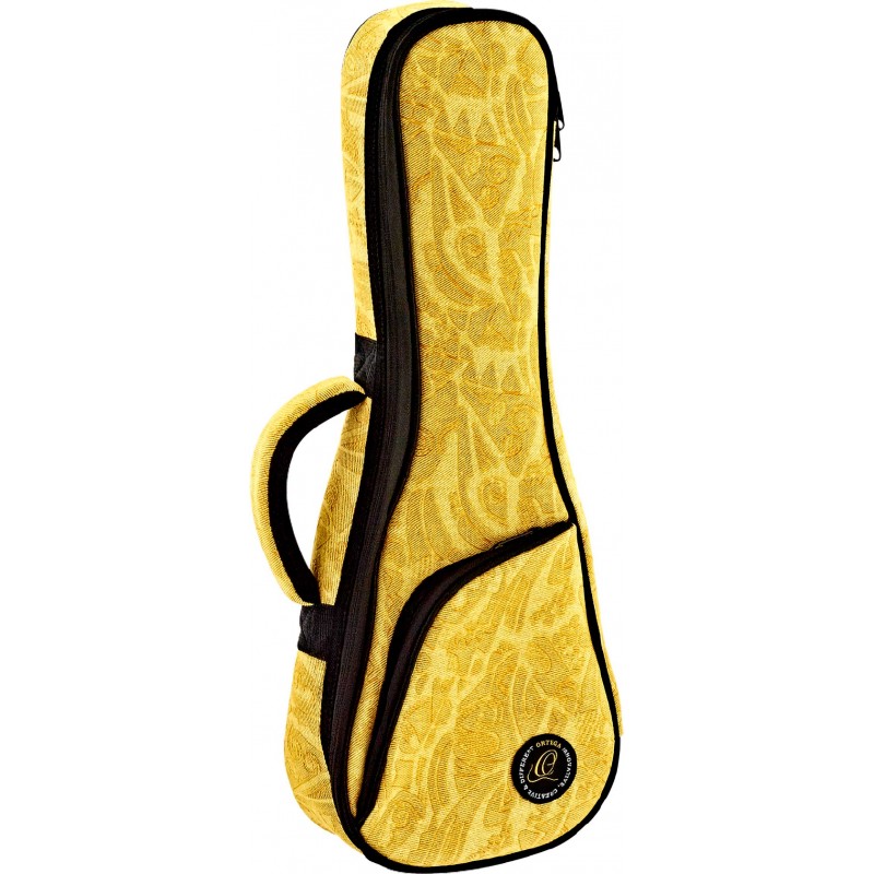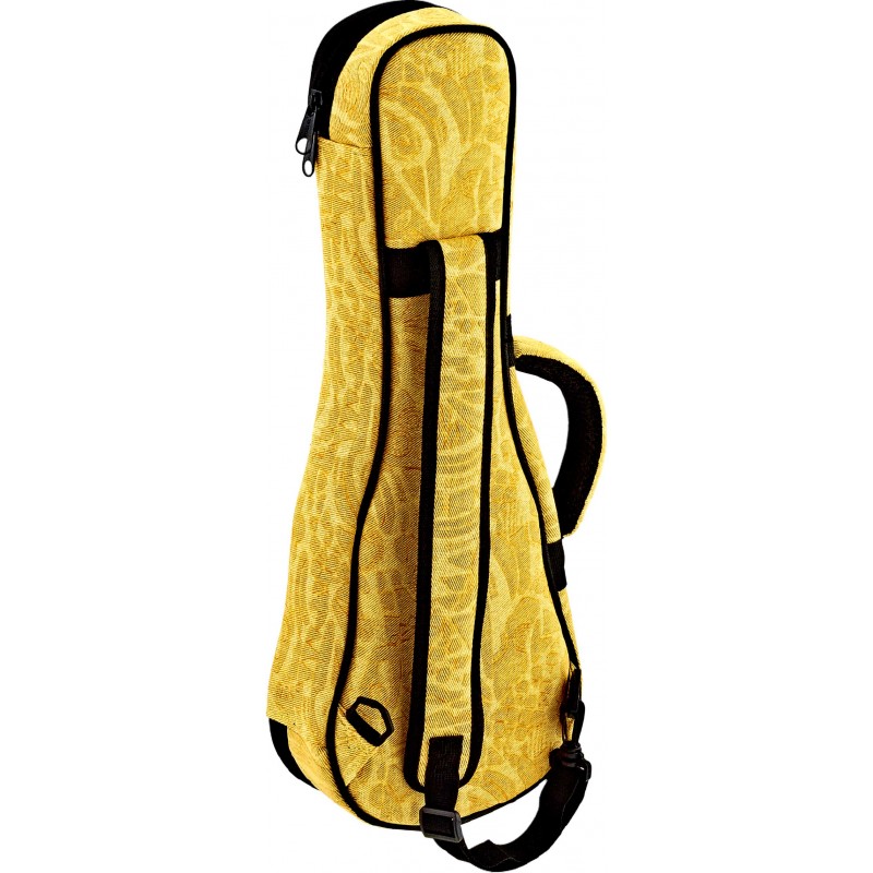 Custodia stampata per ukulele soprano con esterno in cotone stile `` jean´´ e interno in nylon. 12 mm di imbottitura. Con cinturini stile zaino. Scomparto frontale. Colore Sun Jean