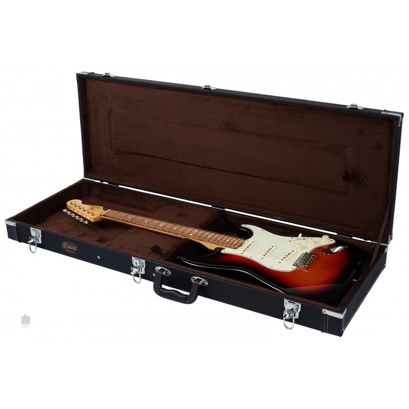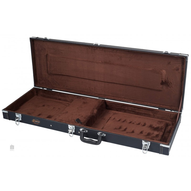Estuches para instrumentos económicos con acabado clásico de vinilo negro. Parte superior plana, acolchado de 15 mm cubierto con terciopelo 'café', compartimento para accesorios, herrajes cromados y un asa resistente...