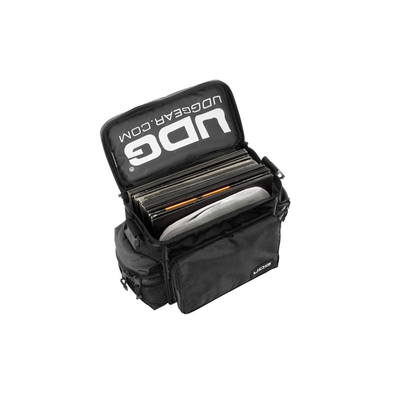 U9630 - La borsa per DJ UDG Ultimate SlingBag Black contiene circa 50 dischi o un'interfaccia audio, MIDI controller, più cavi e laptop de 13'Colore: Nero Peso: 2,15 kgDimensioni esterne: 39 x 38 x 21 cm Dimensi
