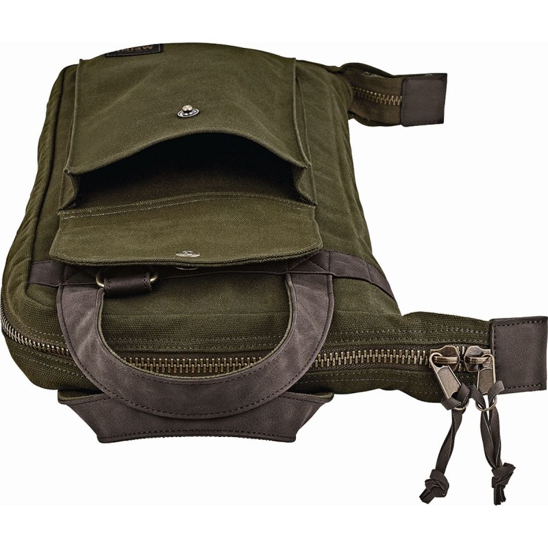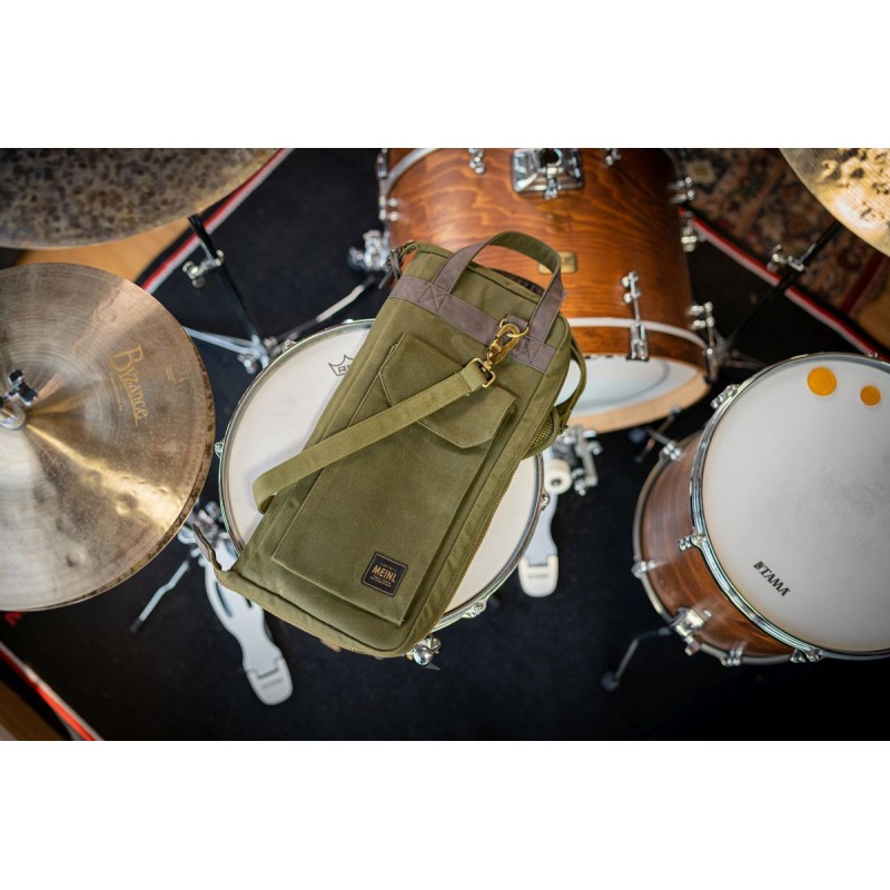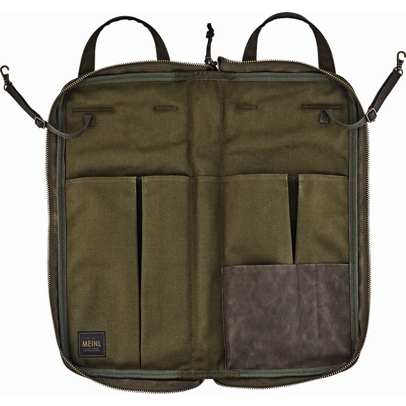 Borsa per bacchette Waxed Canvas:Nel compartimento principale ci sono cinque tasche per contenere una grande quantità di bacchette, spazzole, mallet e rods (quattro tasche grandi più un taschino piccolo nella faccia...