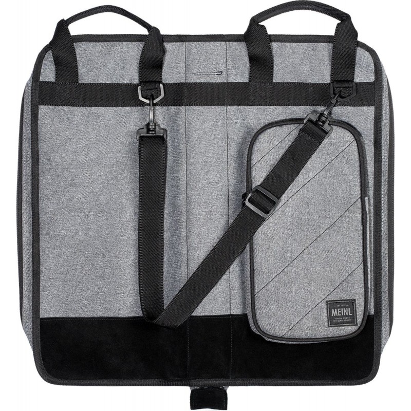Il nostro tessuto esterno in poliestere 600D ultra resistente è rinforzato con un rivestimento in PVC per una maggiore durata. Presenta inoltre dettagli in pelle scamosciata sul fondo. All'interno dello scomparto principale ci sono cinque tasche per riporre un gran numero di bacchette, spazzole, battenti e mazze (4 grandi tasche a soffietto e 1 tasca aggiuntiva). Inoltre, ci sono quattro tasche per accessori di dimensioni più piccole per ospitare parti o effetti sonori. Questa borsa è dotata di ganci e cinghie per floor tom di lunghezza regolabile affinché rimanga in posizione aperta. Per un rapido accesso, l'ampia tasca esterna è dimensionata per accessori o strumenti comuni. Una tracolla regolabile/removibile ti permette di trasportare comodamente questa bag ai concerti o in studio.