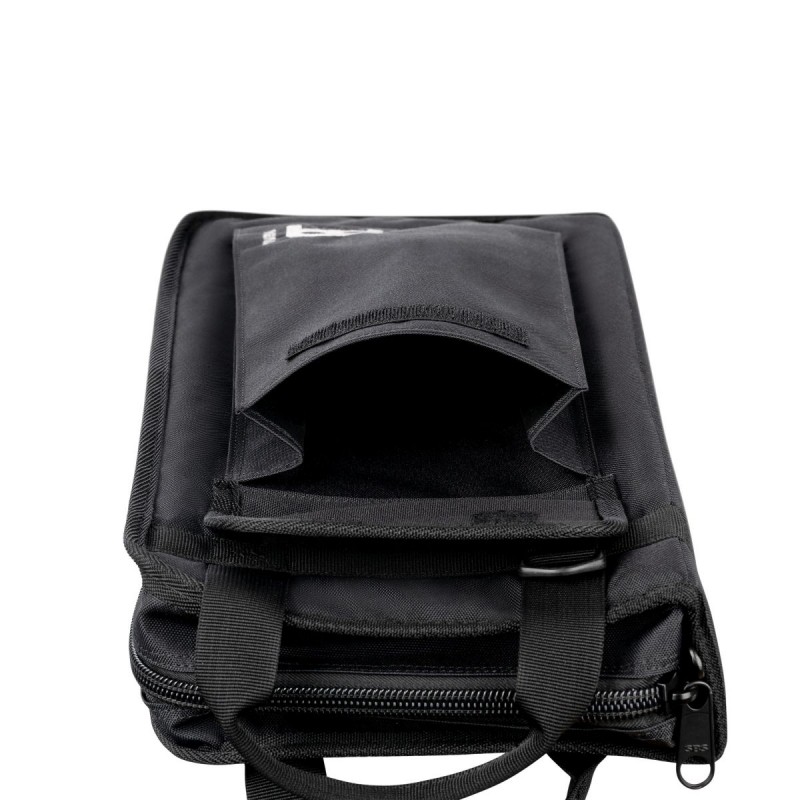 Uno speciale design dello scomparto ti consente di estrarre rapidamente le coppie di bacchette corrispondenti dalla bacchetta ogni volta che ne hai bisogno. All'interno ci sono otto tasche per bacchette, ognuna delle quali cucito per adattarsi a un singolo paio di bacchette di qualsiasi dimensione. Riempi le tasche con paia di pesi e diametri uguali di modelli identici, o paia separate di diametri diversi se usi pi taglie. Ci sono altre sei tasche che variano per dimensioni per un totale di quattordici tasche interne. Una tasca esterna oversize consente di accedere a parti e accessori. Include ganci per la base e cinghie per sospendere la borsa in posizione aperta. al tuo fianco nel tuo kit. Ideale per batteristi, percussionisti, dilettanti, studenti e musicisti itineranti. Realizzato in resistente poliestere 600D e PVC, manici/cinturino in tessuto e cerniera a doppio tiretto. Caratteristiche: Design speciale della tasca per un rapido accesso a coppie di bacchette combinate. Otto tasche per bacchette in paia singole di diverse dimensioni Taglia: media