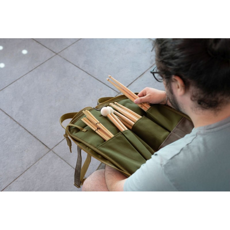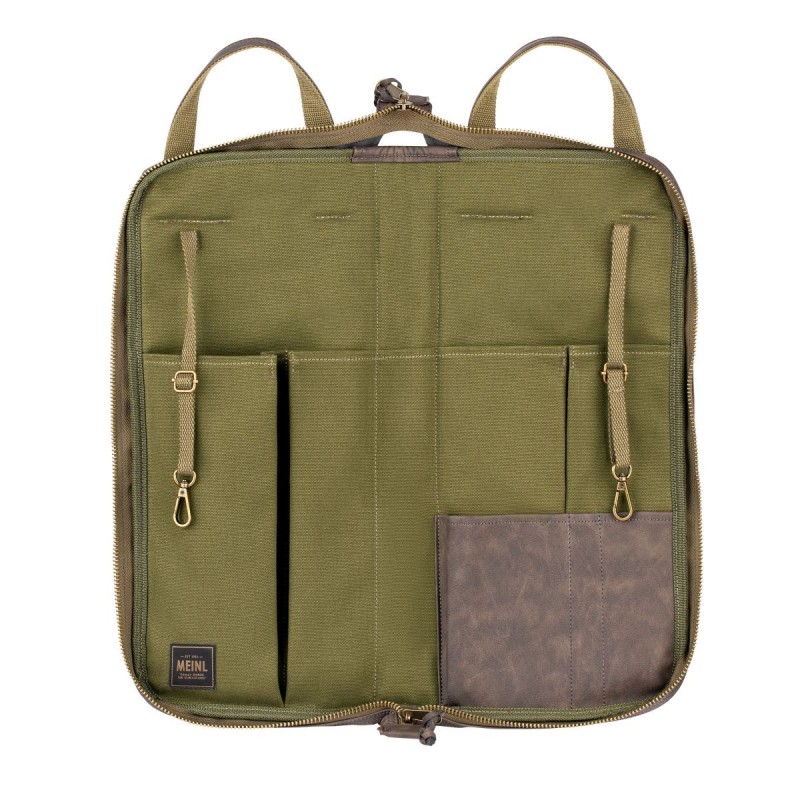La Vintage Hyde Stick Bag di Meinl una soluzione comoda e di stile per i tuoi tour. LÕesterno in finta pelle e lÕinterno in cotone 24-denari sono perfetti per una vita di utilizzo. Nel compartimento interno principale ci sono 5 tasche, perfette per ospitare bacchette, rods, spazzole e mallet. In pi ci sono tre differenti tasche per gli accessori, piccole parti di ricambio e effetti sonori. La borsa accessoriata con ganci per essere applicata aperta su un floor tom. La grande tasca anteriore perfetta per ricambi e accessori. La tracolla e le maniglie in finta pelle ti permetteranno un comodo trasporto. LÕapertura facile, grazie alla cerniera di grandi dimensioni con linguette in finta pelle. La Meinl Vintage Hyde Bag ha un look senza tempo, perfetto in ogni tuo viaggio. Disponibile in finitura Black, Dark Brown e Light Brown.CARATTERISTICHE:Esterno in finta pelle di alta qualitˆCinque tasche interne per bacchette, rods, spazzole e mallet3 tasche interne per accessori/attrezziTasca esterna ampia per accessori/attrezziGanci per floor tomTracolla rimovibileMisura: standard