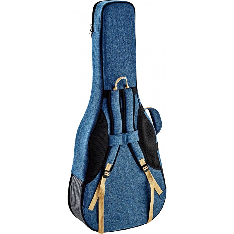 Custodia semirigida per chitarra acustica di gamma professionale. Con finitura in cotone e pelle scamosciata. Protezione interna aggiuntiva. Con spallacci. Maniglia extra imbottita. Con scomparto esterno. Colore Ocean...