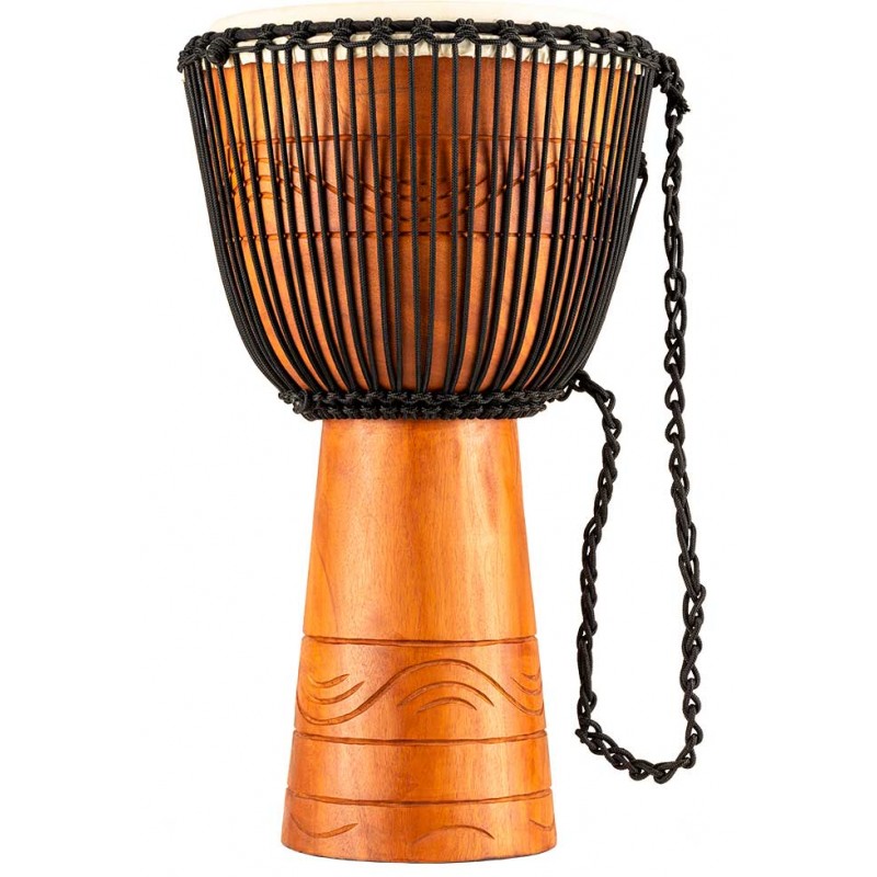 'Djembe di legno e custodia misura13''''. Dotato di teste in pelle di capra selezionate a mano e di corde in nylon per un'accordatura ottimale. Gli stupendi djembes della serie Meinl Headliner si distinguono per la...