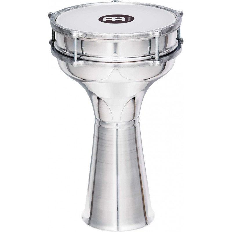 'Darbouka da 8'''' X 14 1/2''''. Stile turco. Realizzato in alluminio. Con patch sintetico sostituibile ( Ricambio non incluso). Colore argento.Caratteristiche principali:Testa sinteticaInclude chiave di accordatura