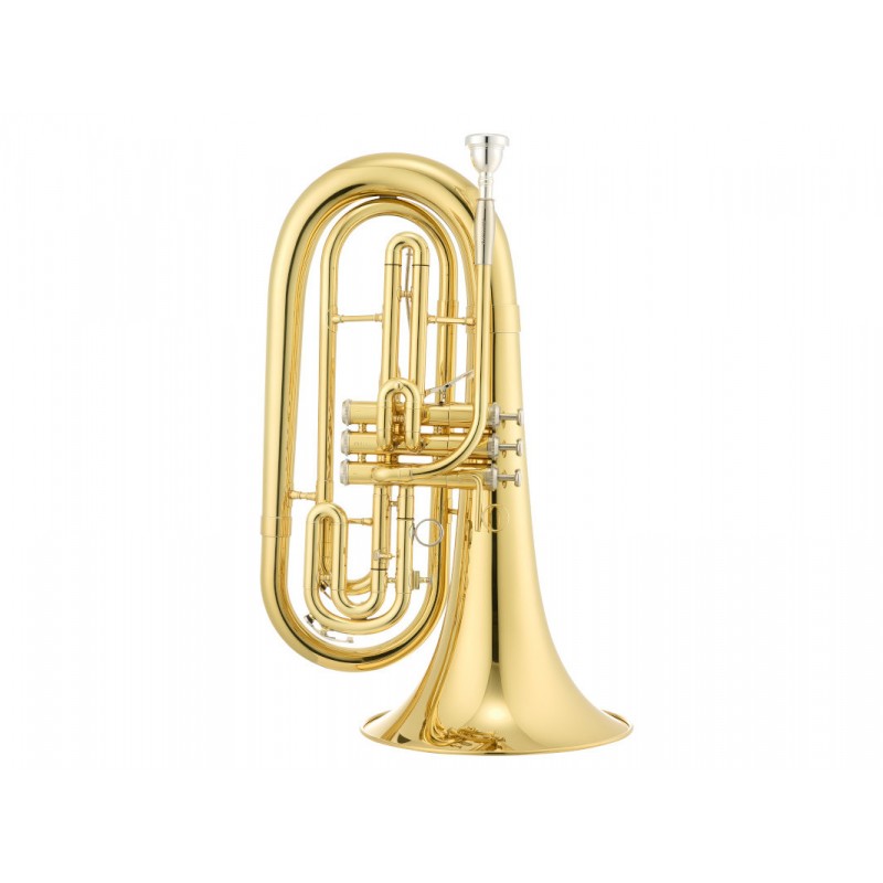 Marching Baritone in Sib / Intonazione: SIb / Astuccio e accessori / Serie ottoni da Marching / Canneggio: 13.50 mm / Campana: diametro 254 mm, Ottone, laccato / Pistoni: 3, acciaio inox / Peso: 2.60 kg / Altezza: 540...