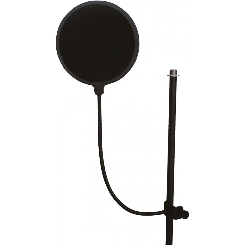 Attenua il suono delle ''P'' e delle ''S''. Doppia cappa di nylon per un miglior rendimento. Collo di cigno orientabile. Morsetto di fissaggio a supporti per microfono.