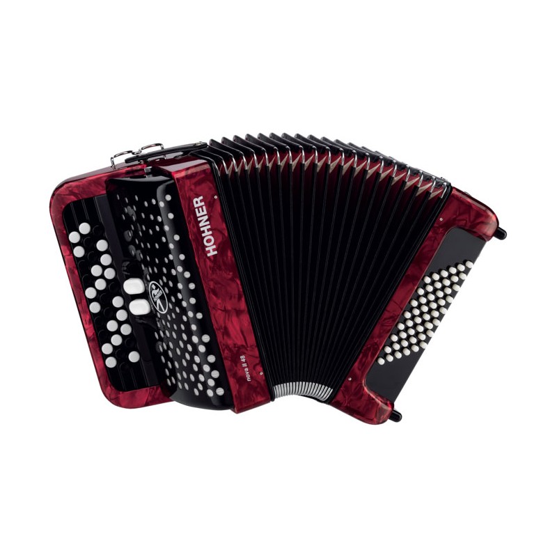 Fisarmonica cromatica, 31 bottoni, 2 voci, 48 bassi. Borsa imbottita e tracolle.