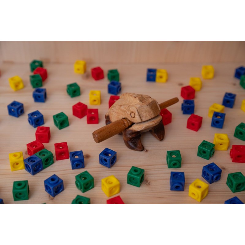 'Il Guiro NINO¨ Percussion Wood Frog cavo all'interno con un retro scanalato che crea un suono ''ribbit'' quando si trascina sopra il rbattente. L'aspetto dello strumento lo rende divertente da suonare per i...