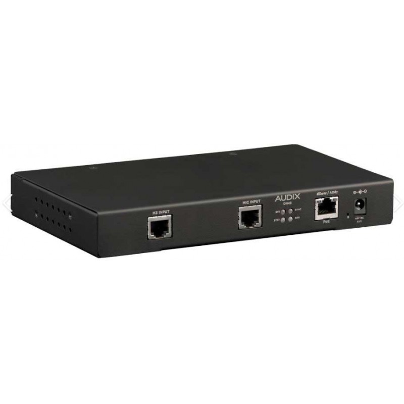 Linterfaccia del microfono DN43 una parte fondamentale del sistema Audix Dante. Sistema microfonico integrato AES67, il modo pi veloce e senza soluzione di continuit per offrire prestazioni audio Audix rinomate su reti Ethernet. Laudio di alta qualit e tutte le funzioni del microfono, tra cui laccensione e lo spegnimento e gli indicatori di stato a LED, sono disponibili tramite un singolo cavo CAT5 CAT7 con connessioni RJ45 sia sullinterfaccia che sul microfono. Questa configurazione estremamente semplice elimina guasti di saldatura, errori di cablaggio, accelera linstallazione e riduce notevolmente i costi. Il DN43 presenta un ingresso RJ45 per microfono progettato specificamente per il microfono pickup a tre elementi Audix M3 e un ingresso per microfoni a singolo elemento pickup entrambi dotati di uscita Audix RJ45. Dispone inoltre di due uscite logiche a 5 V per porta, con capacit sorgente / collettore per LED controllati DSP collegati alla rete. Sono disponibili impostazioni di filtro passaalto e passabasso su ciascun canale audio, cos come otto livelli di guadagno selezionabili, con tutte le impostazioni configurabili via software.