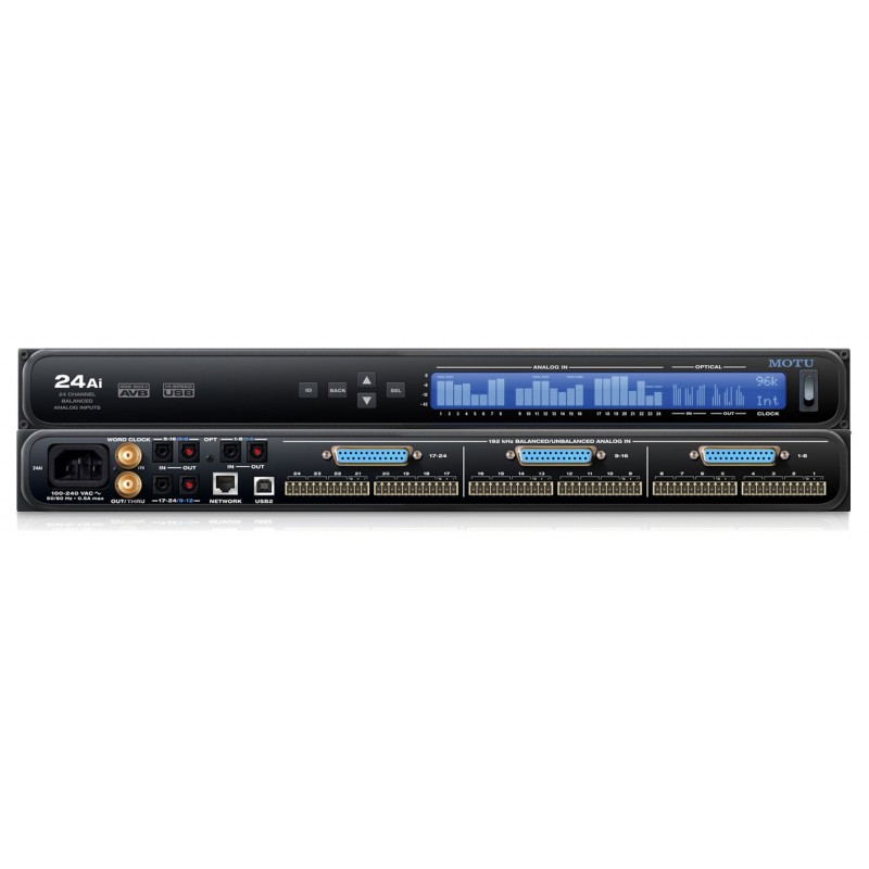 MOTU 24 AI, interfaccia audio USB 2.0. Convertitori AD e mixer autonomo a 72 canali, frequenze di campionamento: 44,1, 48, 88,2, 96, 176,4, 192 kHz, elaborazione interna a 32 bit in virgola mobile, 24 ingressi di...