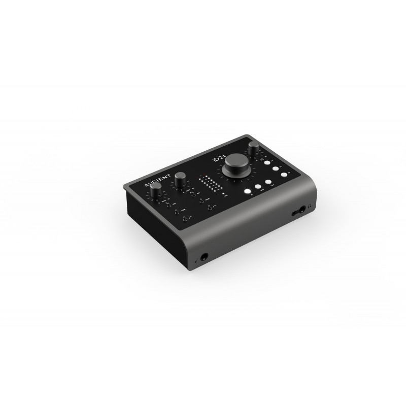 Interfaccia Audio 10 IN / 14 OUT con Preamp MicrofoniciTi presentiamo iD24, l'interfaccia audio creata per produttori e ingegneri. Dotato di due preamplificatori microfonici Audient Console, convertitori leader della categoria e un layout intuitivo, iD24 combina senza sforzo prestazioni audio sorprendenti con facilità d'uso. Se a ciò si aggiungono caratteristiche professionali come gli inserti bilanciati, l'espandibilità ADAT e il controllo del monitor personalizzabile, iD24 rende pi facile che mai ottenere risultati di qualità da studio.Ogni interfaccia iD è dotata del preamplificatore microfonico Audient Console, lo stesso design del circuito discreto che si trova nella nostra rinomata console di registrazione ASP8024-HE. Progettati per offrire un rumore ultra basso e una bassa distorsione con un tocco di calore analogico classico, i due pre microfonici Audient di iD24 ti daranno il suono professionale che meriti.Caratteristiche2 Preamplificatori microfonici per console Audient di classe AConvertitori AD/DA leader della categoria1 Ingresso strumento JFET discretoUscite Altoparlanti Main e Alt1 Uscita doppia cuffia indipendente1 Ingresso e uscita ADAT2 Inserti completamente bilanciatiMixer DSP a bassissima latenzaLoopback audioControllo di scorrimento3 Tasti funzione definiti dall'utenteControlli Dim e Cut dedicatiInterruttori +48V, pad e HPFCompatibile con USB 3.024bit/96kHzUscita word clockDesign interamente in metalloSoftware gratuito + plug-inDimensioni: 134 x 198 x H66mm