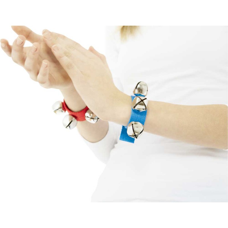 Il braccialetto con campanelle Nino dispone di una cinghia in morbido e comodo nylon e di tre campanelle. I bambini possono portarlo intorno al polso o avvolto intorno alla mano per fare musica ovunque vadano. Azzurro.