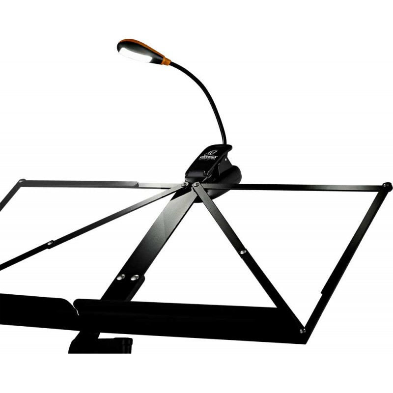 Lampada per leggio con illuminazione a 4 led. Con batteria ricaricabile via USB (cavo incluso). Braccio flessibile. Due modalità di illuminazione, brillante e soft. Autonomia di 8 ore.