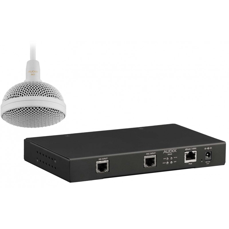 Il M3WDK M3DK colore bianco un kit pratico che combina il microfono a sospensione da soffitto Audix M3 grigio con linterfaccia microfonica Audix DN43 Dante. Interfaccia AES67, offre un sistema semplice da installare...