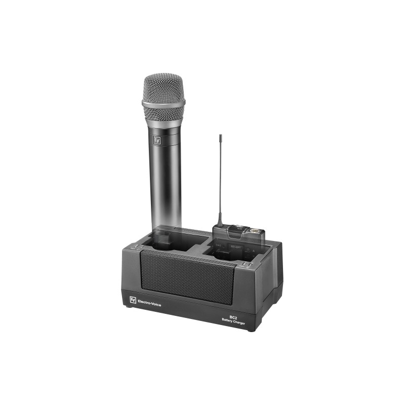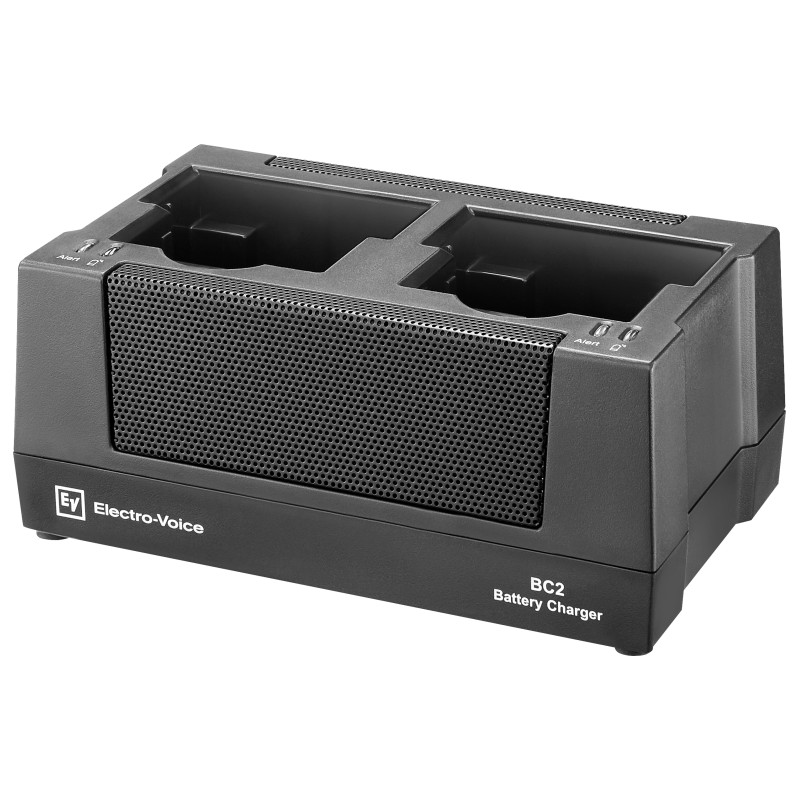 Caricabatterie per due trasmettitori wireless (trasmettitore portatile RE3-HHT o trasmettitore da cintura RE3-BPT). Tempo di ricarica: 3 ore