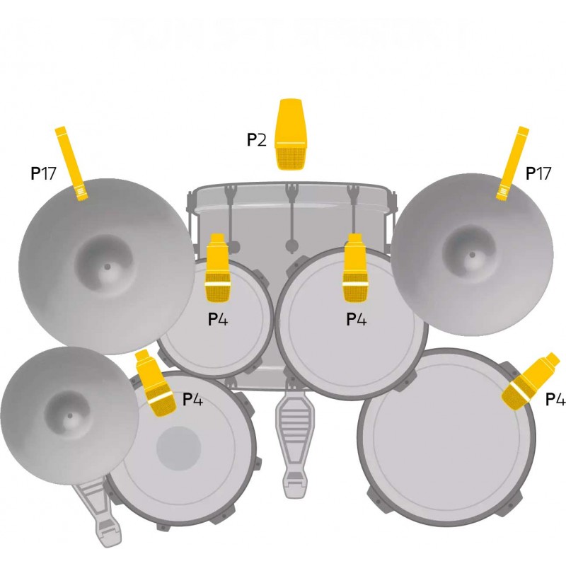 Set di microfoni per batteria ad alte prestazioni, contiene: 1x P2, 2x P17, 4x P4 (il P17 è tecnicamente identico al P170 e non è disponibile singolarmente)