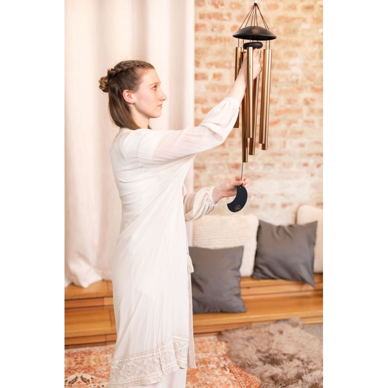 MMC32B - Moon Meditation Chime 32 Pollici/80cm - BronzeMeditation Chime Meinl Sonic Energy sono ottimi per la meditazione, il relax, le applicazioni terapeutiche o anche per decorare il tuo giardino e la tua casa. Il loro suono magico riempie l'intero ambiente e ti invita a sognare. Questi chimes sono caratterizzati da una risonanza particolarmente buona e da un lungo riverbero. Sono accordati sulla base A4/la' 432 Hz. Goditi il __suono morbido e rilassante. Un simbolo decorativo nella parte inferiore del cordone completa questi bellissimi strumenti.Attacca il campanello da meditazione staticamente all'anello di alluminio o tienilo con una mano per suonare con l'altra mentre ti muovi. Controlla il suono inclinando delicatamente il cavo lateralmente per far suonare i rintocchi. Con una clip regolabile sotto il pendolo in legno al centro, puoi variare il numero di colpi (pi alto il pendolo, meno colpi) o fermarlo completamente (posizionare il pendolo in alto).I Meditation Chime Meinl Sonic Energy sono realizzati in alluminio resistente alla corrosione e hanno una finitura resistente ai raggi UV e agli agenti atmosferici. Tieni presente, tuttavia, che anche questi strumenti possono arrugginire se vengono utilizzati all'aperto per pi di un anno. Pertanto, tenere questi strumenti lontani dall'esposizione diretta agli agenti atmosferici.