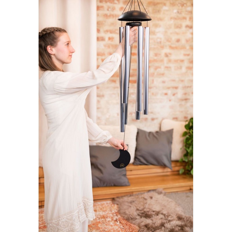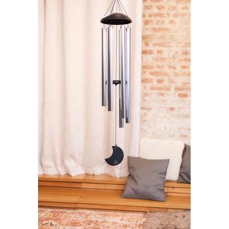MMC44S - Moon Meditation Chime 44 Pollici/110cm - SilverMeditation Chime Meinl Sonic Energy sono ottimi per la meditazione, il relax, le applicazioni terapeutiche o anche per decorare il tuo giardino e la tua casa. Il loro suono magico riempie l'intero ambiente e ti invita a sognare. Questi chimes sono caratterizzati da una risonanza particolarmente buona e da un lungo riverbero. Sono accordati sulla base A4/la' 432 Hz. Goditi il __suono morbido e rilassante. Un simbolo decorativo nella parte inferiore del cordone completa questi bellissimi strumenti.Attacca il campanello da meditazione staticamente all'anello di alluminio o tienilo con una mano per suonare con l'altra mentre ti muovi. Controlla il suono inclinando delicatamente il cavo lateralmente per far suonare i rintocchi. Con una clip regolabile sotto il pendolo in legno al centro, puoi variare il numero di colpi (pi alto il pendolo, meno colpi) o fermarlo completamente (posizionare il pendolo in alto).I Meditation Chime Meinl Sonic Energy sono realizzati in alluminio resistente alla corrosione e hanno una finitura resistente ai raggi UV e agli agenti atmosferici. Tieni presente, tuttavia, che anche questi strumenti possono arrugginire se vengono utilizzati all'aperto per pi di un anno. Pertanto, tenere questi strumenti lontani dall'esposizione diretta agli agenti atmosferici.