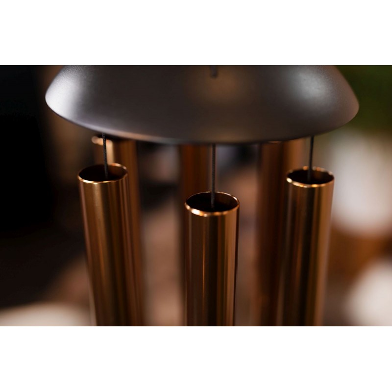 MMC44B - Moon Meditation Chime 44 Pollici/110cm - BronzeMeditation Chime Meinl Sonic Energy sono ottimi per la meditazione, il relax, le applicazioni terapeutiche o anche per decorare il tuo giardino e la tua casa. Il loro suono magico riempie l'intero ambiente e ti invita a sognare. Questi chimes sono caratterizzati da una risonanza particolarmente buona e da un lungo riverbero. Sono accordati sulla base A4/la' 432 Hz. Goditi il __suono morbido e rilassante. Un simbolo decorativo nella parte inferiore del cordone completa questi bellissimi strumenti.Attacca il campanello da meditazione staticamente all'anello di alluminio o tienilo con una mano per suonare con l'altra mentre ti muovi. Controlla il suono inclinando delicatamente il cavo lateralmente per far suonare i rintocchi. Con una clip regolabile sotto il pendolo in legno al centro, puoi variare il numero di colpi (pi alto il pendolo, meno colpi) o fermarlo completamente (posizionare il pendolo in alto).I Meditation Chime Meinl Sonic Energy sono realizzati in alluminio resistente alla corrosione e hanno una finitura resistente ai raggi UV e agli agenti atmosferici. Tieni presente, tuttavia, che anche questi strumenti possono arrugginire se vengono utilizzati all'aperto per pi di un anno. Pertanto, tenere questi strumenti lontani dall'esposizione diretta agli agenti atmosferici.