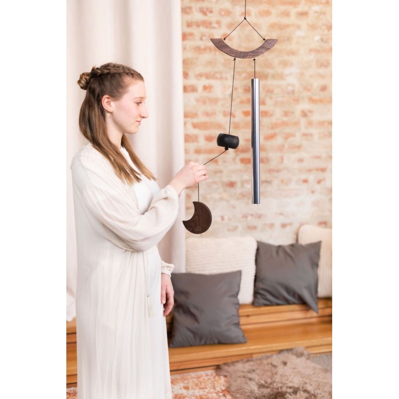 MMC35S - Moon Meditation Chime 35 Pollici/80cm - SilverMeditation Chime Meinl Sonic Energy sono ottimi per la meditazione, il relax, le applicazioni terapeutiche o anche per decorare il tuo giardino e la tua casa. Il loro suono magico riempie l'intero ambiente e ti invita a sognare. Questi chimes sono caratterizzati da una risonanza particolarmente buona e da un lungo riverbero. Sono accordati sulla base A4/la' 432 Hz. Goditi il __suono morbido e rilassante. Un simbolo decorativo nella parte inferiore del cordone completa questi bellissimi strumenti.Attacca il campanello da meditazione staticamente all'anello di alluminio o tienilo con una mano per suonare con l'altra mentre ti muovi. Controlla il suono inclinando delicatamente il cavo lateralmente per far suonare i rintocchi. Con una clip regolabile sotto il pendolo in legno al centro, puoi variare il numero di colpi (pi alto il pendolo, meno colpi) o fermarlo completamente (posizionare il pendolo in alto).I Meditation Chime Meinl Sonic Energy sono realizzati in alluminio resistente alla corrosione e hanno una finitura resistente ai raggi UV e agli agenti atmosferici. Tieni presente, tuttavia, che anche questi strumenti possono arrugginire se vengono utilizzati all'aperto per pi di un anno. Pertanto, tenere questi strumenti lontani dall'esposizione diretta agli agenti atmosferici.
