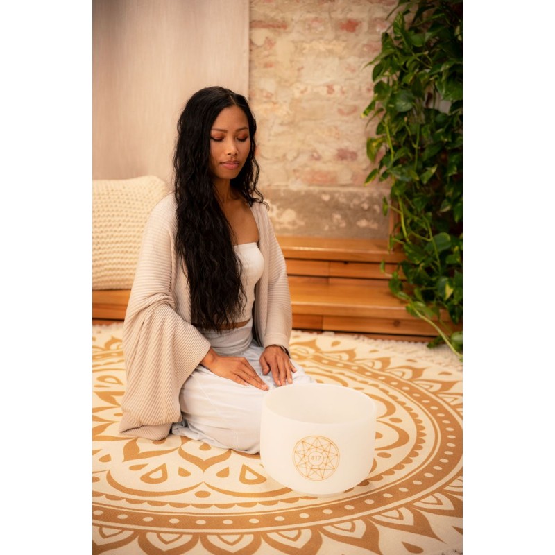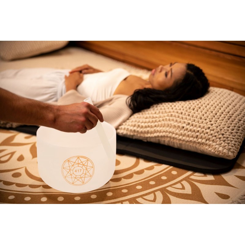 Le campane tibetane Meinl Sonic Energy Solfeggio Crystal sono realizzate utilizzando frequenze antiche. Le frequenze del solfeggio sono vibrazioni di suoni che si dice abbiano un effetto curativo e di promozione della salute sul nostro corpo, mente e anima. Giˆ nell'antichitˆ queste frequenze erano conosciute ed utilizzate per la cura di malattie fisiche e psicologiche. Ad esempio, i monaci usavano queste frequenze storiche nei loro corali gregoriani e vedevano un effetto curativo nella trasmissione delle vibrazioni al corpo. Queste campane tibetane smerigliate bianche in quarzo di elevata purezza creano un'aura molto piacevole con il loro suono e il loro design. Il loro tono sferico di lunga durata si diffonde quando la campana tibetana viene picchiettata o strofinata delicatamente in modo che l'energia possa essere percepita in tutto l'ambiente circostante. Tutte le campane di cristallo sono corredate da un anello in silicone per evitare possibili urti e garantire la migliore risonanza. Puoi utilizzare le campane di cristallo per una varietˆ di scopi: guarigione dei chakra, meditazione, terapia del suono, yoga, miglioramento del Fengshui della tua casa, regolazione del tuo stato emotivo o per decorazione. Frequenza: 417 Hz aiuta a superare le esperienze traumatiche e semplifica il cambiamento. Chakra: chakra Sacrale