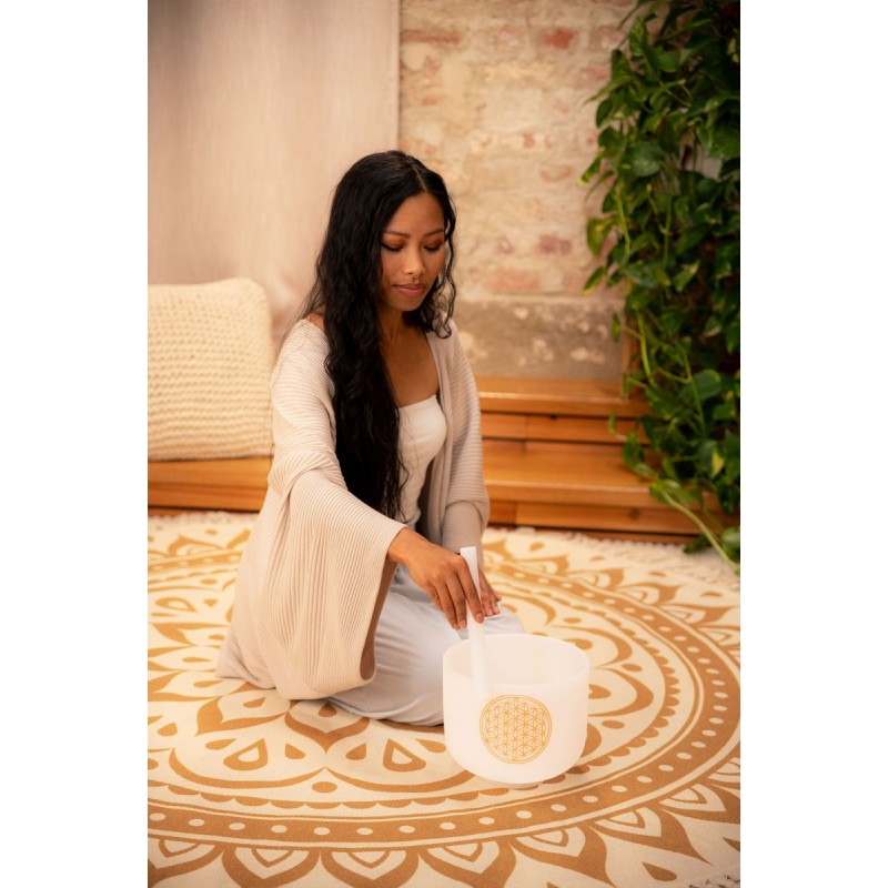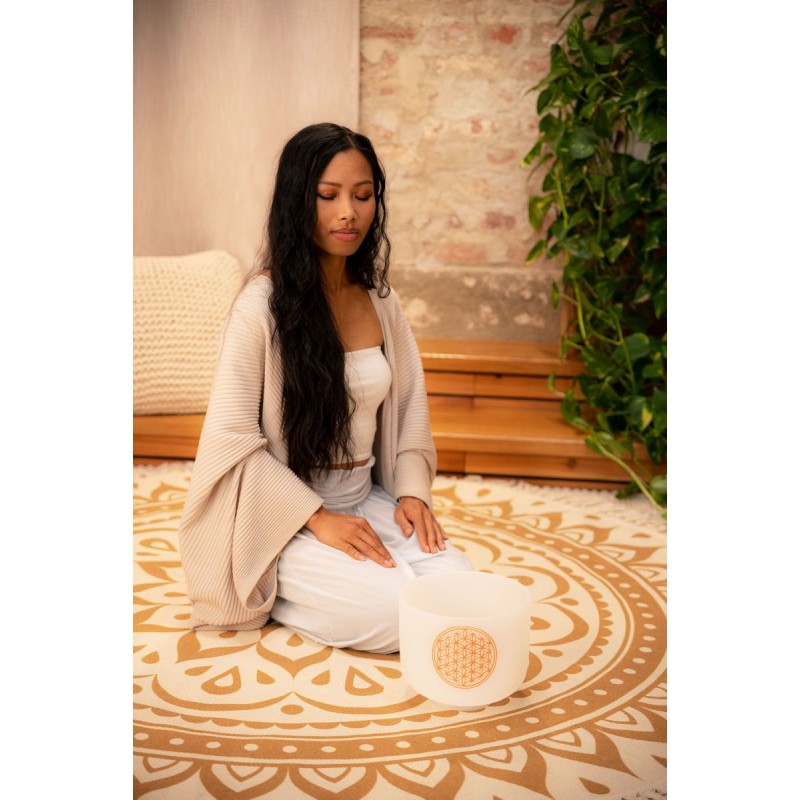 Le campane tibetane Meinl Sonic Energy Crystal Singing Bowl realizzate in quarzo di elevata purezza creano un'aura molto piacevole con il loro suono e il loro design. Il tono sferico di lunga durata si diffonde quando la campana tibetana viene picchiettata o strofinata delicatamente in modo che l'energia possa essere percepita in tutto l'ambiente circostante. Tutte le campane tibetane in cristallo vengono consegnate con un anello in silicone per evitare possibili urti e garantire la migliore risonanza. Puoi usare le campane tibetane di cristallo per una varietˆ di scopi: guarigione dei chakra, meditazione, terapia del suono, yoga, miglioramento della tua casa Fengshui, regolazione del tuo stato emotivo o anche per decorare una stanza.Frequenza del fiore della vita: 128 Hz un suono adatto in ogni circostanza che si rivolge a tutti i chakra. Rafforza l'amore incondizionato per noi stessi e per gli altri. La sua frequenza anche chiamata vibrazione curativa e ha un effetto calmante ed equilibrante.