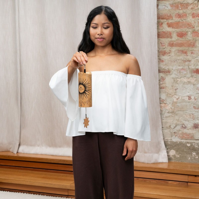 CBCSOL - I Cosmic Bamboo Chimes di Meinl Sonic Energy producono toni morbidi e risonanti che riempiono il tuo spazio con un suono sereno, per la meditazione, i bagni sonori e lo yoga. Oppure creano uno spazio rilassante in casa per riflettere. Tieni il cavo e ruota delicatamente il chime per riattivarlo. All'interno c' un pendolo e un gruppo di perni metallici accordati su toni specifici. Modifica facilmente il tono scegliendo uno dei due pendoli: acrilico (duro) e legno (morbido). Inserire l'estremitˆ della chiusura a pendolo attraverso la parte inferiore delle campane. Fissare la fibbia al gancio della traversa in legno. Tira il cavo intrecciato dritto e tiralo verso l'alto per far suonare i campanelli. Disponibile in quattro impostazioni adattate agli orari del giorno: Aurora (mattina), Sole (giorno), Luna (pomeriggio) e Stella (notte). Combinane due o pi per generare contrasto nello stato d'animoOgni chime dotato di due pendoli di ricambio aggiuntivi (acrilico, legno)Suoni morbidi e risonantiPer la meditazione, i bagni sonori e lo yogaIntonato per adattarsi all'ora del giornoCinturino per una facile sospensioneDimensioni: 2,6 pollici/6,5 cm di diametro, 17 pollici/43 cm di altezza